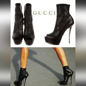 EUC RARE GUCCI Nappa Stretch Mid Calf Runway Peep Toe Ankle Booties SZ 9