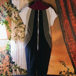 EUC: R&K ORIGINALS Sze 1X Black, Gray & White Colorblock Zipper Dress