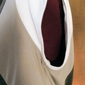 Excellent Used Condition: R&K ORIGINALS Sze 1X Black, Gray & White Colorblock Zipper Dress is beautiful and stylish. The dress features a color scheme of black, gray, and white, with the black fabric making up the majority of the skirt and a central panel on the bodice. The dress is sleeveless with a round neckline. A prominent gold-tone zipper runs down the entire length of the back, from the neckline to the hem, adding a unique detail. This versatile dress is made from a soft, comfortable and is suitable for a variety of occasions.