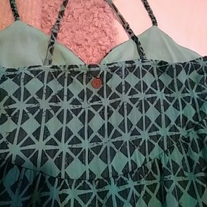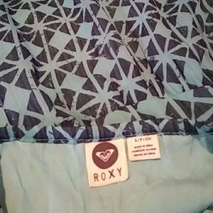 EUC - worn once. Super cute Roxy Maxi dress. Navy blue and aqua sheer patterned fabric over an aqua lining that goes all the way to the bottom of dress. Perfect summer dress.
