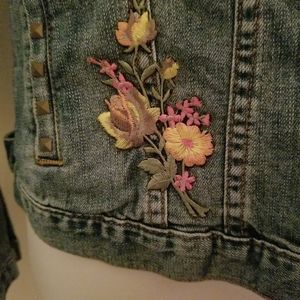 Absolutely wonderful embroidered hummingbird and flower denim jacket.