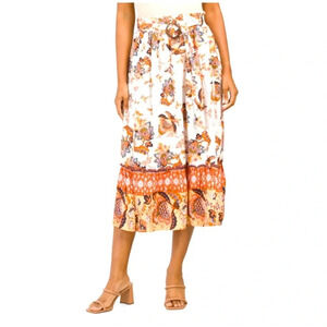 EUC Rachel Roy linen boho skirt with ruffle. Size Medium. Elastic gathered waist. Comfortable and beautiful! Perfect for spring, summer, into fall! Could be dressed up to a wedding, worn casually with a tank, or layered over a swimsuit for a perfect beach look.