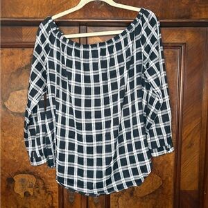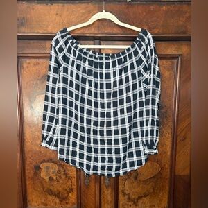 EUC Rag & Bone-Off-Shoulder Plaid Top - Black and White. Size L