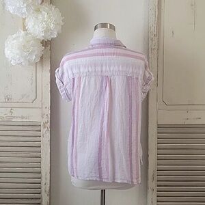 EUC [Rails] Striped White & Pink Blouse Top | Pastel Button Down Shirt | Medium