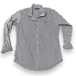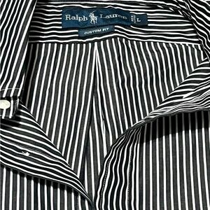 EUC Ralph Lauren Black White Striped Long Sleeve Button Down Large Custom Fit