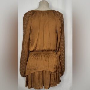 EUC Ramy Brook Smocked Metallic Mini Carmel Gathered Dress. HIGH-END DESIGNER