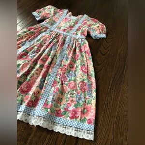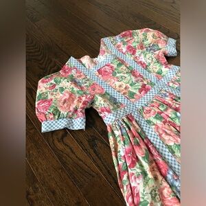 *EUC* Rare Editions Girls 8 Vintage Blue Gingham w/Ivory Floral A-Line Dress