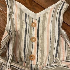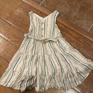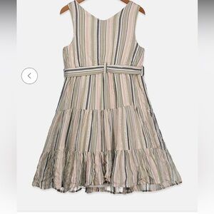 EUC Rare Editions Stripe Sleeveless Belted Dress, White and Grey Combo size 5