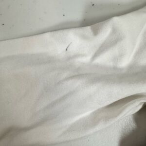 See all photos Sleeves- a small mark on one of the sleeves - the white undershirt is not attached