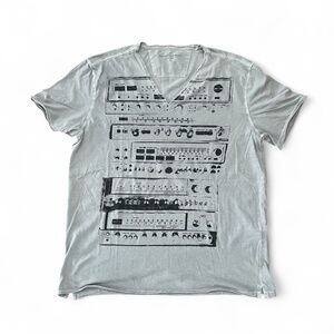 EUC Rare JOHN VARVATOS GRAPHIC Stereo Receivers Print T-SHIRT! Gray Sz XL