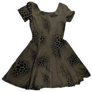 EUC Rare Nooworks Olive Green Polka Dot Short Sleeve Mini Dress Women’s Sz Small