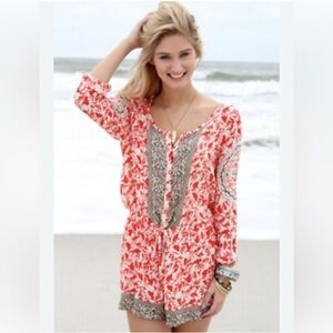 EUC! Really beautiful! Free People Red Bronze Gardenia Shorts Romper Long Sleeve