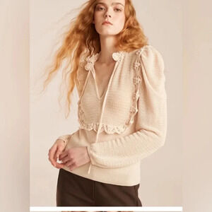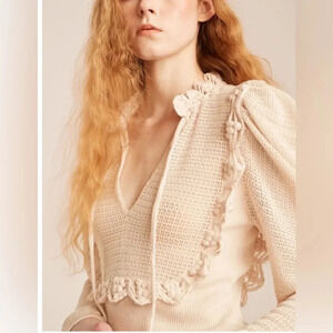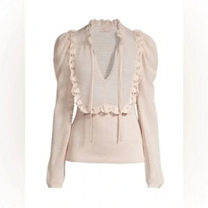 EUC Rebecca Taylor Crochet Stitch Wool Blend Sweater Long Sleeve Nude Pink Large