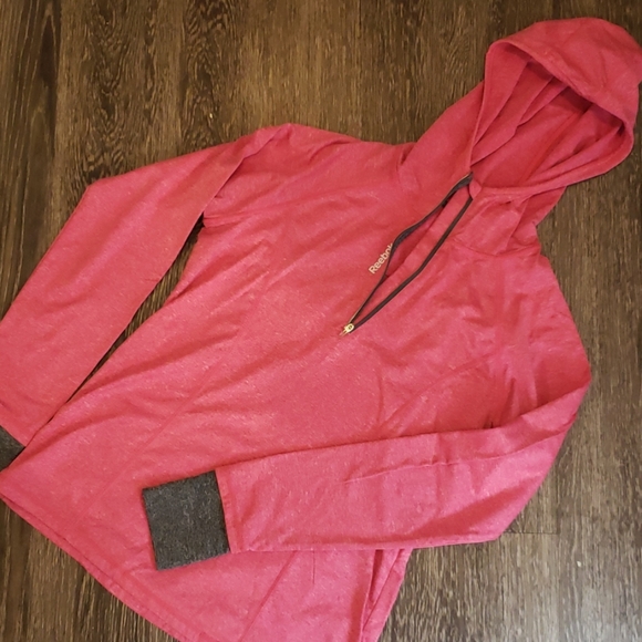 Excellent used condition reebok medium long sleeve shirt/jacket with hood and zipper around the neck.