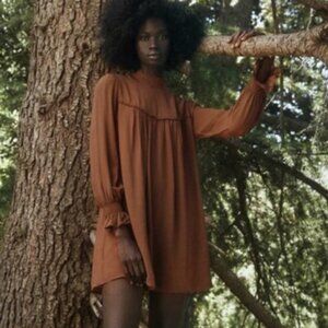 EUC Reformation Jourdan Viscose Victorian Mini Dress Brown Medium