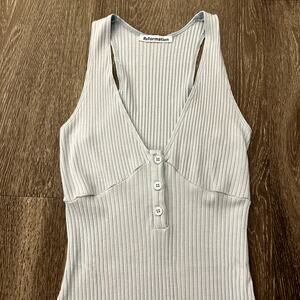 EUC Reformation Paso Knit Mini Dress Light Blue Ribbed Button Front Tank Small