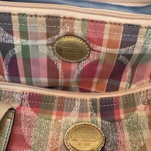 EUC Retired Coach Poppy Daisy Madras Plaid Signature Large Tote Bag Weekender