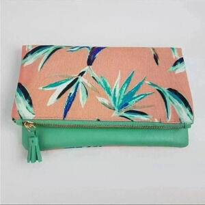 EUC Reversible Rachel Pally Clutch Purse Paradise Coral/Mint Fabfitfun Vegan Bag