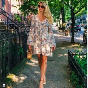 EUC Revolve Wayf Pembrook Beige Floral Boho Swing Mini Dress Size Medium