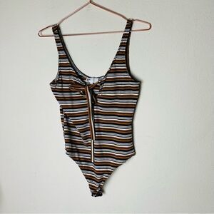 EUC Revolve by the way. Striped Tie Front Bodysuit Medium