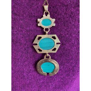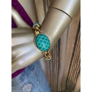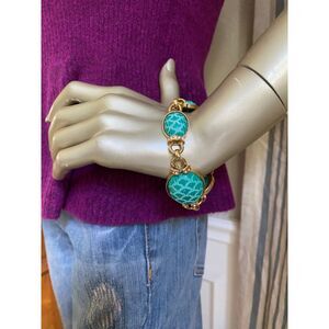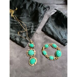 EUC Roberto Cavalli Turquoise Stone Snake Etched Pendant Necklace Bracelet 2 Piece Set