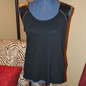 EUC Rock and Republic Sleeveless top. High/low style with faux leather and silver studs on shoulder area. Size Small.