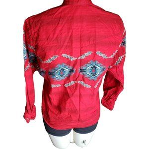 EUC Roper Western Shirt - Aztec Symbols on Muted Red Stripes - Women Size Small