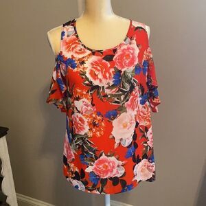 ❤️EUC Rose & Olive Cold Shoulder Top Size Medium❤️