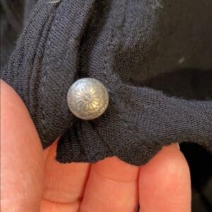 Excellent condition, smoke free Size small but oversized, fits like a medium Black boho embroidered button down blouse from Roxy Lightweight gauzy type fabric, perfect for the beach, date night or a concert / festival 3/4 length Sleeves have a tie at the cuff Measures approximately 21” pit to pit and 24” shoulder to hem Boho hippy style beachy flowy forgiving swim cover embroidery prairie