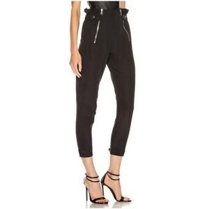 EUC RtA Leon Black Paperbag Waist Zip Ankle Pants S Small Jogger Trousers Silver