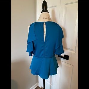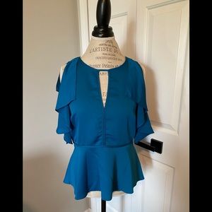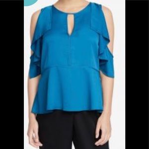 Ruffled sleeves cascade down each arm with chic cold-shoulder cutouts on this irresistible top from RACHEL Rachel Roy.