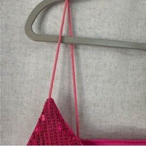 Features: plus size, contrast sequins, spaghetti straps, v neck, sleeveless, backless, high waist, short length