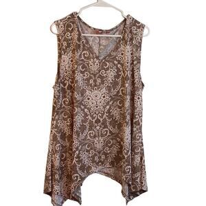 EUC SJS Brand Women's Top Sleeveless V-Neck Handkerchief Hem 2X