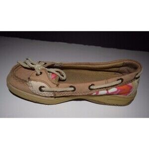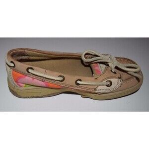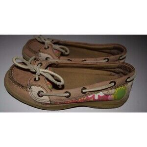 EUC SPERRY TOP SIDER GIRLS ANGELFISH FLORAL BROWN TAN BOAT DECK SHOES