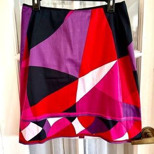 This is a gorgeous EUC SZ 8 T by Tahari colorblock skirt. Vibrant colors and super light cotton. Has a back zip. Pair with a simple black tee and a pair of wedges for a put together look.