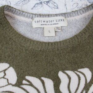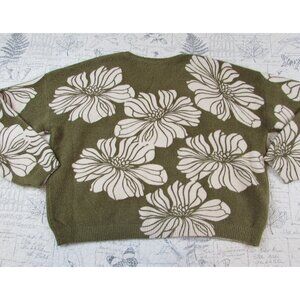 EUC Saltwater luxe floral ganna sweater moss green ivory womens size Large L