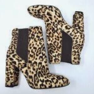 EUC Sam Edelman Leopard Case Chelsea Calf Hair Boots Sand Women's Size 9