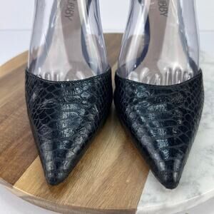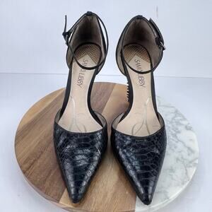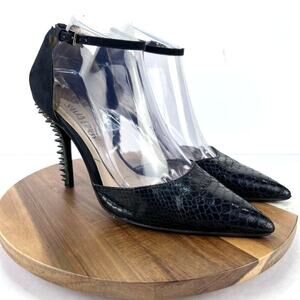 EUC Sam & Libby Dahlia Spike Stud Black Vegan Snake Ankle Pointed Heels 8 Retro