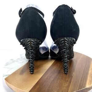 EUC Sam & Libby Dahlia Spike Stud Black Vegan Snake Ankle Strap Heels 8 Retro