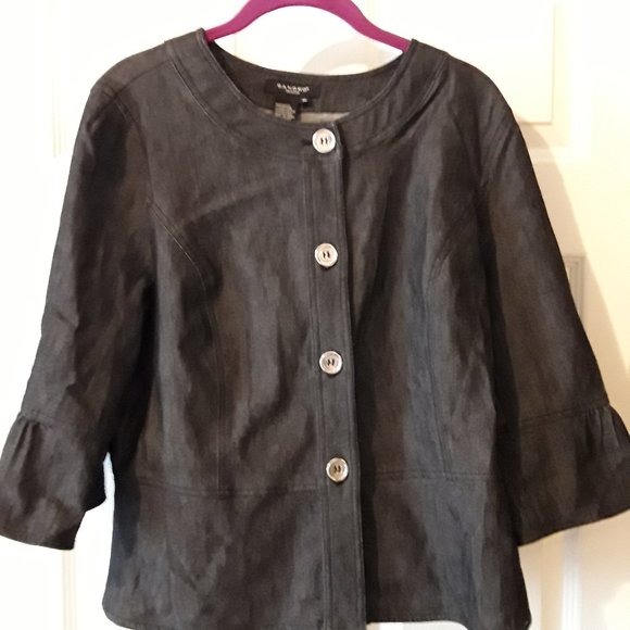 EUC Sandro Sportswear Lightweight Chambray Black Bell Sleeved Cropped Jacket XL