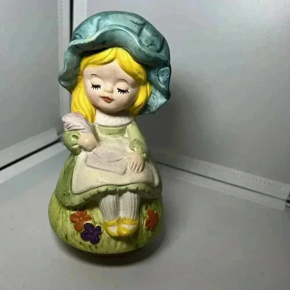 EUC Sankyo Japan Blonde Girl Bonnet VTG 6" Tall Rotating Music Box Nostalgia!!