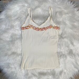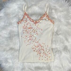 EUC. Sequined Cami Sweater [YUKA] Hand Stitched + Beaded Cream Y2K Tank | Small