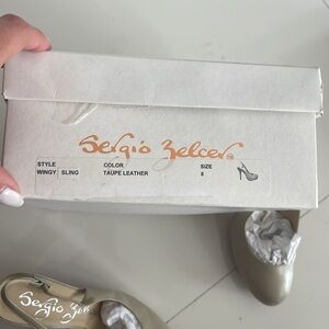 EUC Sergio Zelcer Wingy Sling Taupe Leather Heels SZ 8