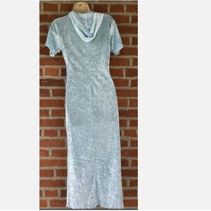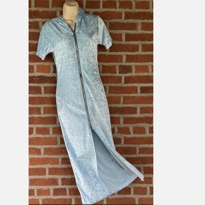EUC Serious Vintage Baby Blue Velvet Short Sleeve Hooded Front Zipper Maxi Dress