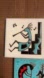 Set of three vintage vibrant ceramic art tiles featuring Southwestern designs. Includes shades of blue, red,, rust and black. Coaster holder is wooden, like new. The only signs of wear is the one coaster has a chip in the upper left corner as shown in pictures. If you are not interested in the coaster holder, I can sell without.