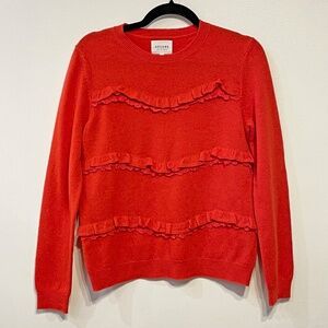 EUC Sezane Andreas Jumper Wool Cashmere Ruffle Sweater Tomato Red Small