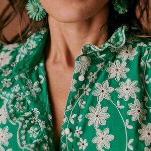 Beautiful embroidered Dalhia shirt from Sezane in green. Size 42 (US 10). Worn once or twice.