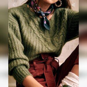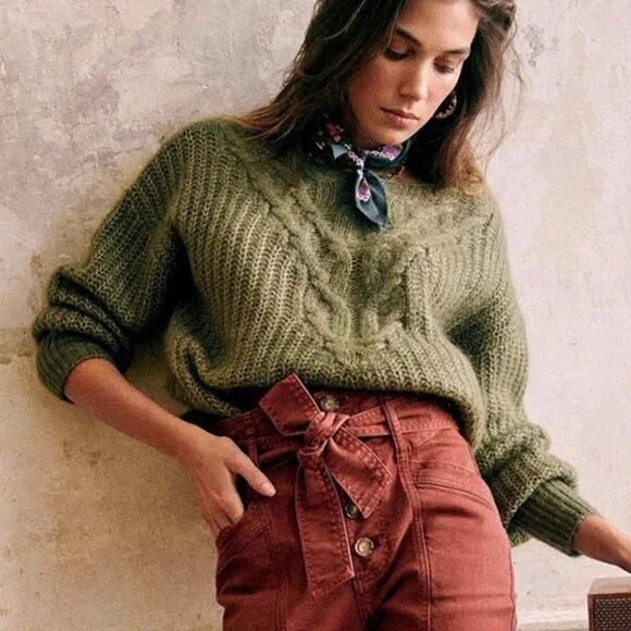 EUC Sezane Jules Cable Knit Mohair Wool Sweater Olive Green XS