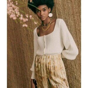 EUC Sezane Marietta Cotton Square Neck Cardigan Ecru XS