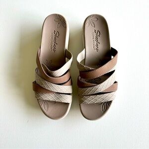 EUC Skechers Pier-Lite-Sun-Fading Beige and Brown Wedge Sandals